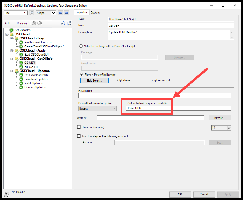 $OSInfoUBRThis will output That OS UBR to a Task sequence variable named: 'OSInfoUBR'