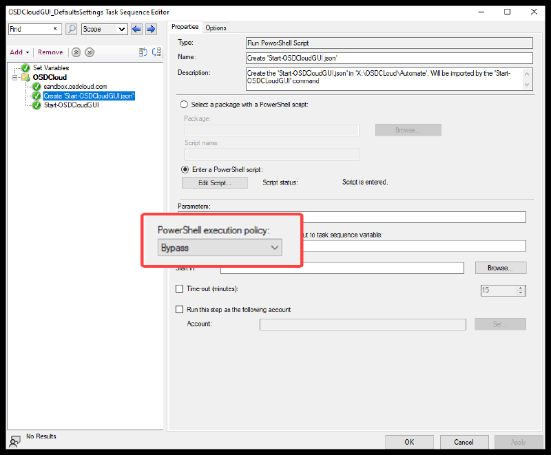 - Set the Execution Policy to Bypass