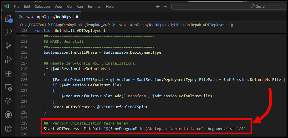 Now lets edit the Invoke-AppDeployToolkit.ps1 script by opening it in your favorite IDE: